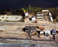 Topsail Island is a popular beach vacation spot along the North Carolina coast. This barrier island was extensively developed for tourism with the construction of condominiums and beach houses. In September 1996, Hurricane Fran made landfall near Wilmington, NC. The counterclockwise air circulation around the hurricane's eye caused heavy wave action and storm surges over Topsail Island.